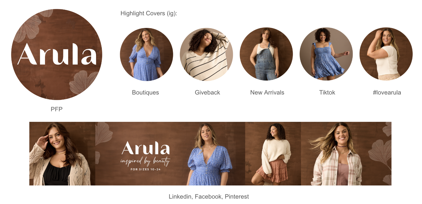 As the lead designer for Arula’s 2024 fall campaign, I crafted the season’s look using a rich palette of warm colors and inviting illustrations. Each element was created to ensure that the campaign not only showcased new arrivals but also inspired a feeling of seasonal joy. Collaborating with the team, I brought our vision to life, creating a cohesive narrative that encouraged customers to celebrate fall with Arula. Everything from the checkout pin pads to the photography backdrop filled me with so much excitement to create!