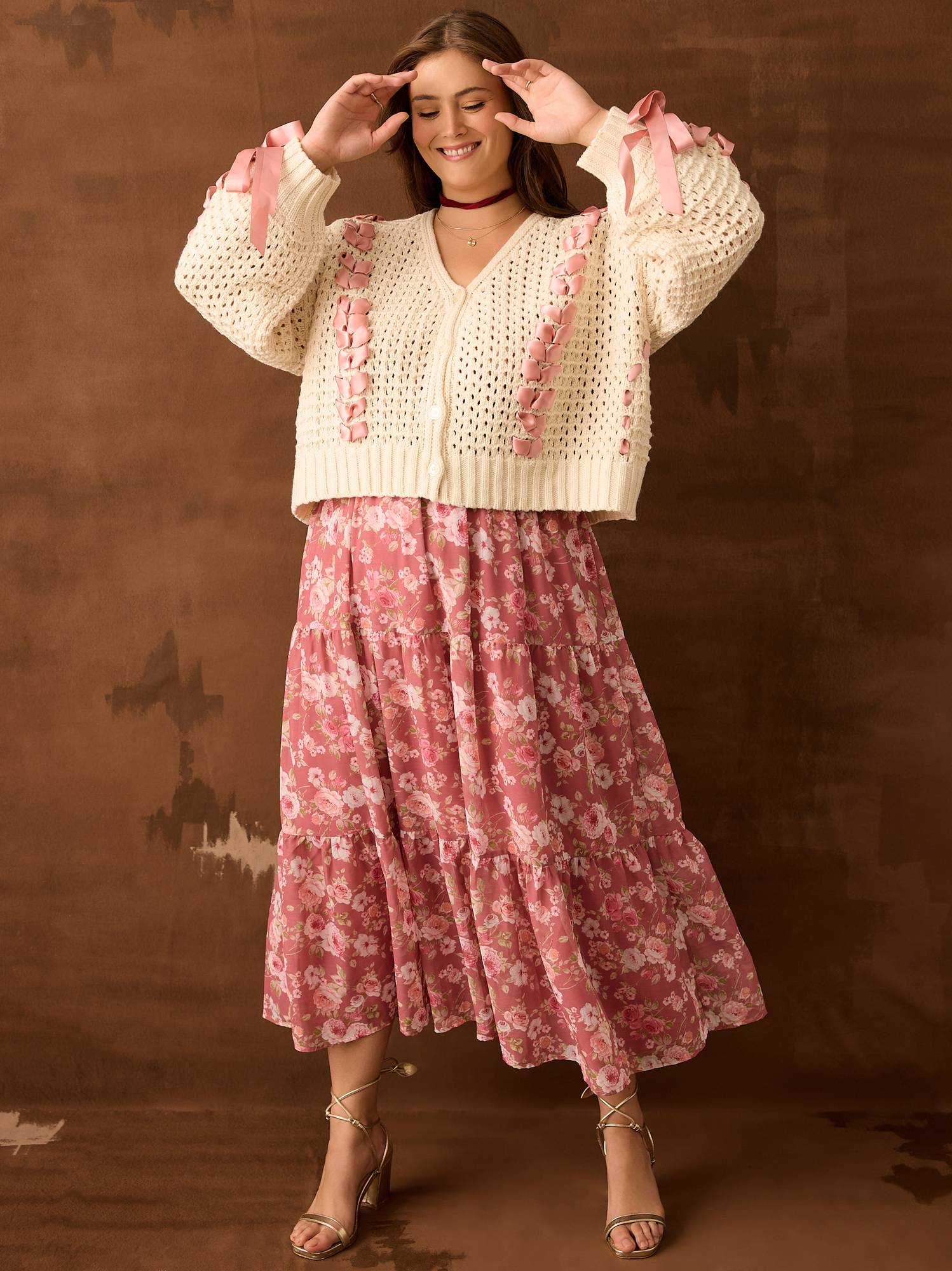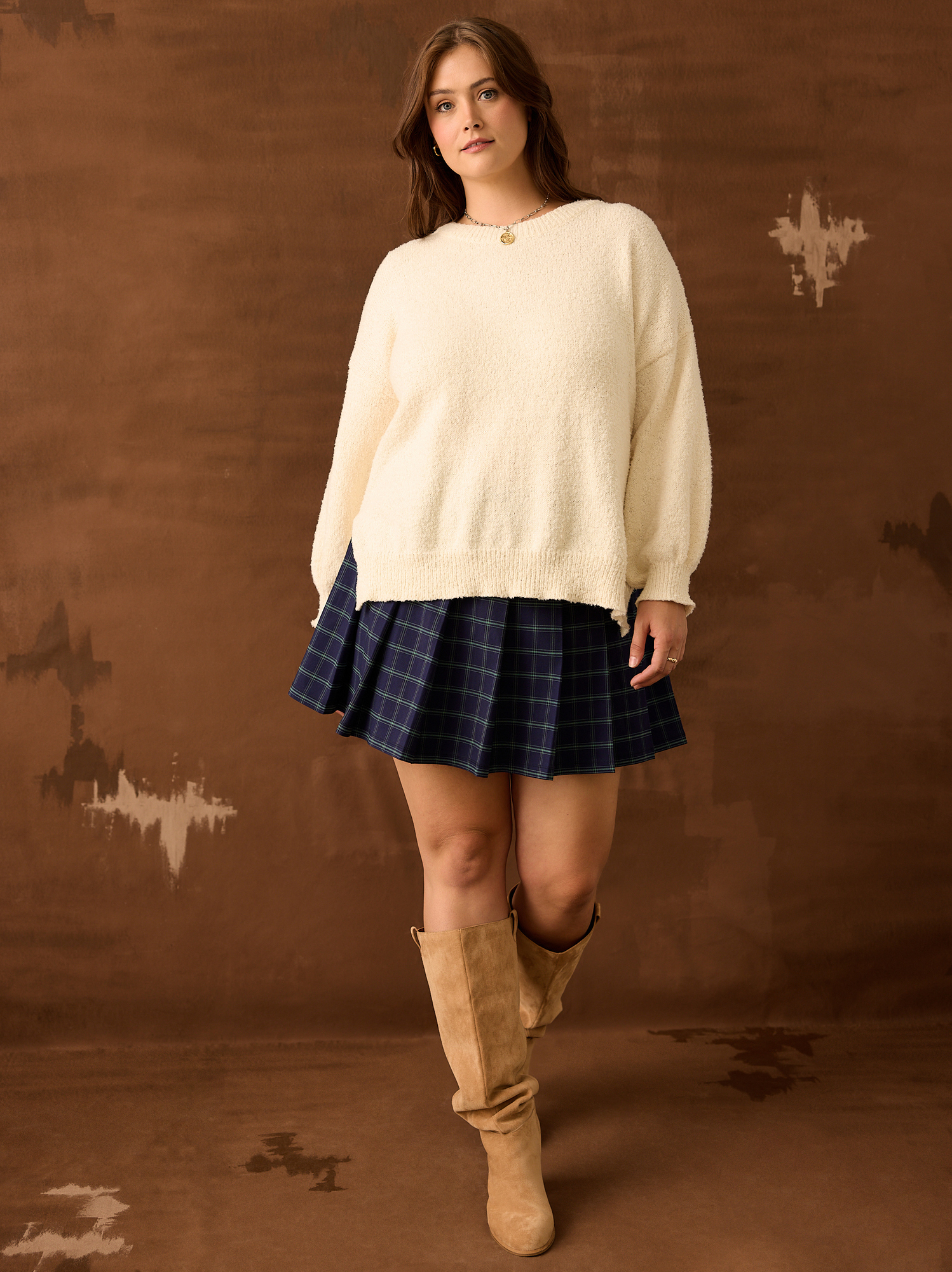 For our fall campaign photoshoot, I created a brown textured backdrop on canvas fabric. With the assistance of my lovely intern Morgan, we transformed a total area of 20 x 24 feet, covering both the backdrop and floor. This canvas truly captured the essence of fall, bringing fall feels from our beautiful stores into the e-commerce realm.